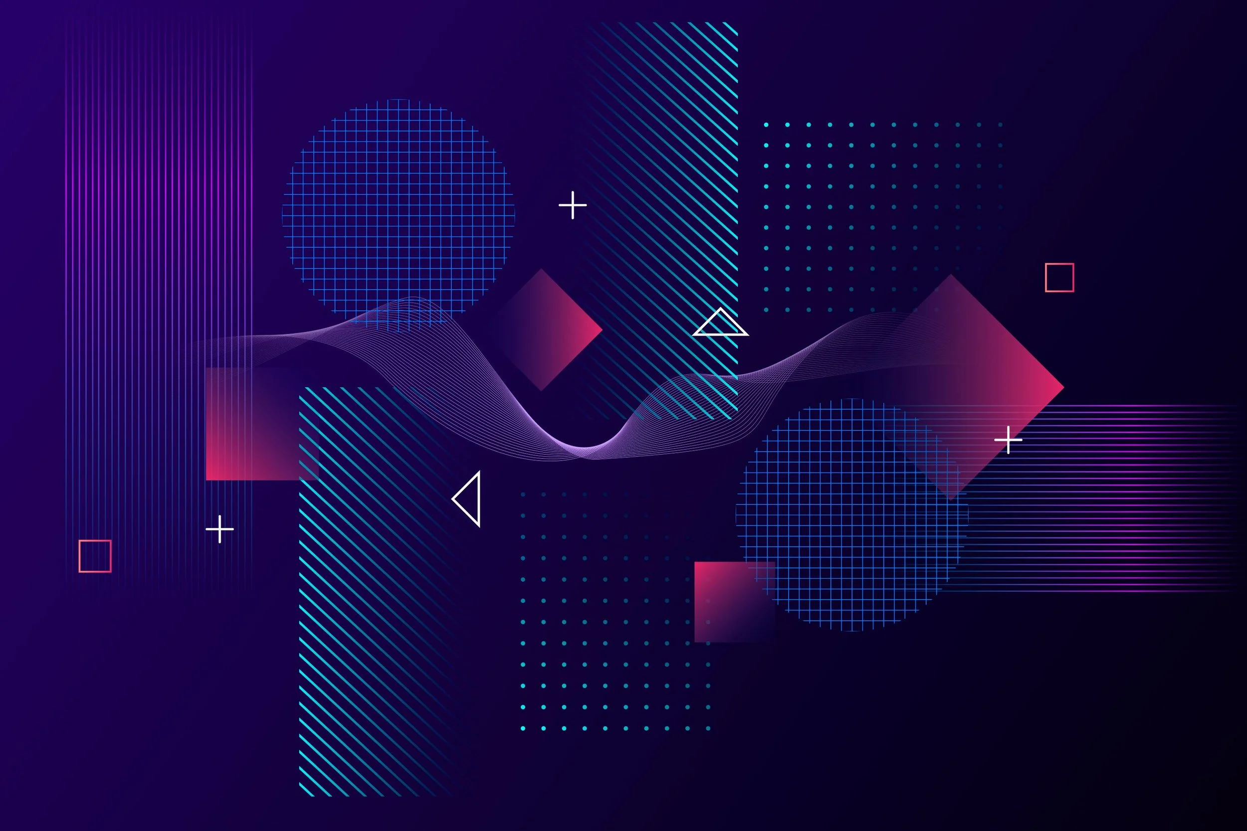 Shape-based animations with depth, timing and camera movement.